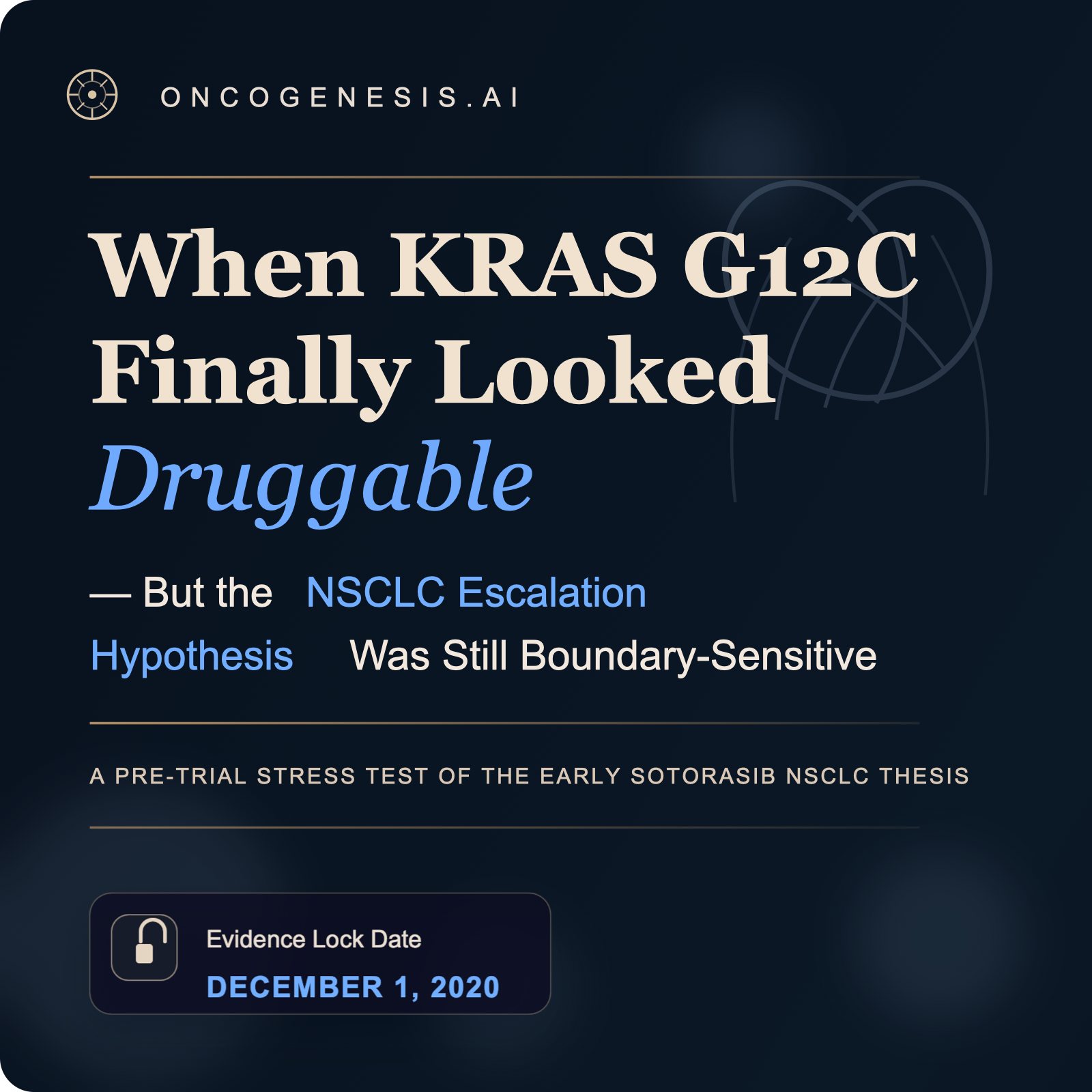 That part was real. The preclinical and early clinical record already showed covalent target engagement, real tumor-regression signal, and real activity in humans. But the early NSCLC thesis carried a hidden mistake: it assumed that once KRAS G12C became druggable, it had also become a stable system-control point. That was the leap. And that was the pre-trial boundary error.