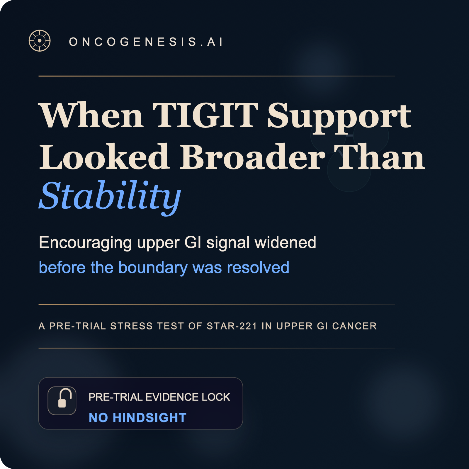 An upper GI pre-trial case showing how local support around a TIGIT combination was mistaken for a stable broad-population escalation thesis.